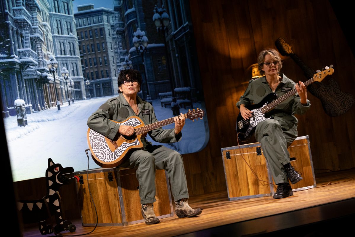 “Frédérique Spigt en Sanne Wallis de Vries buiten fraai uit hoe ze verschillen in een voorstelling over hun vriendschap.” - Parool