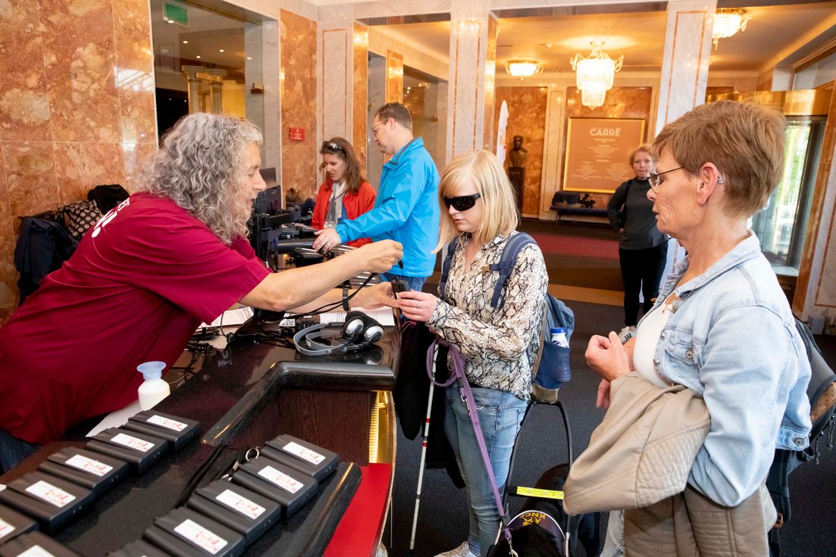 - Daarna krijg je een koptelefoon en ga je op jouw eigen plaats in de zaal zitten. De blindentolk beschrijft tijdens de voorstelling alles wat er te zien is. Zo mis je niets!