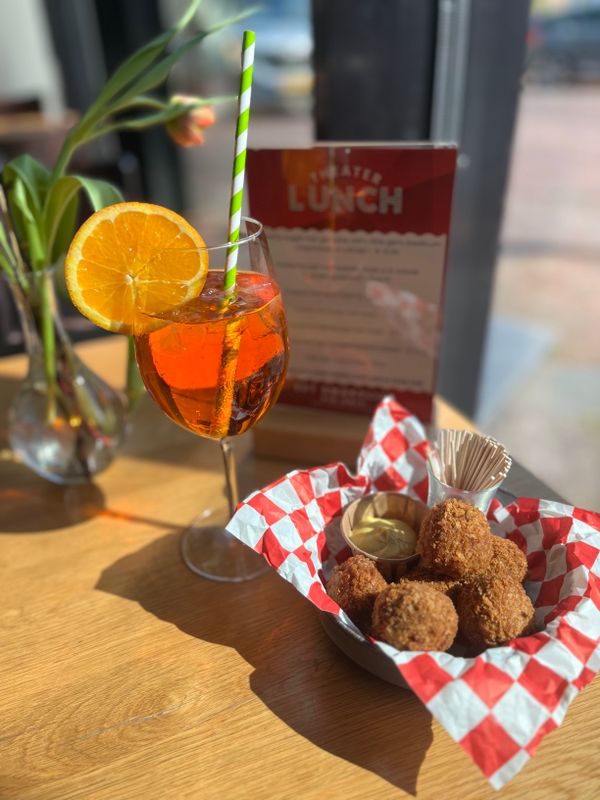 Geniet voor € 12,50 met twee personen van 4 bitterballen met een tipje mosterd, groene pesto kaas, spianata worst, augurkjes, knoflook olijven en truffelkaas. (excl. drankjes).