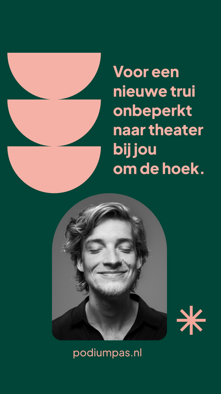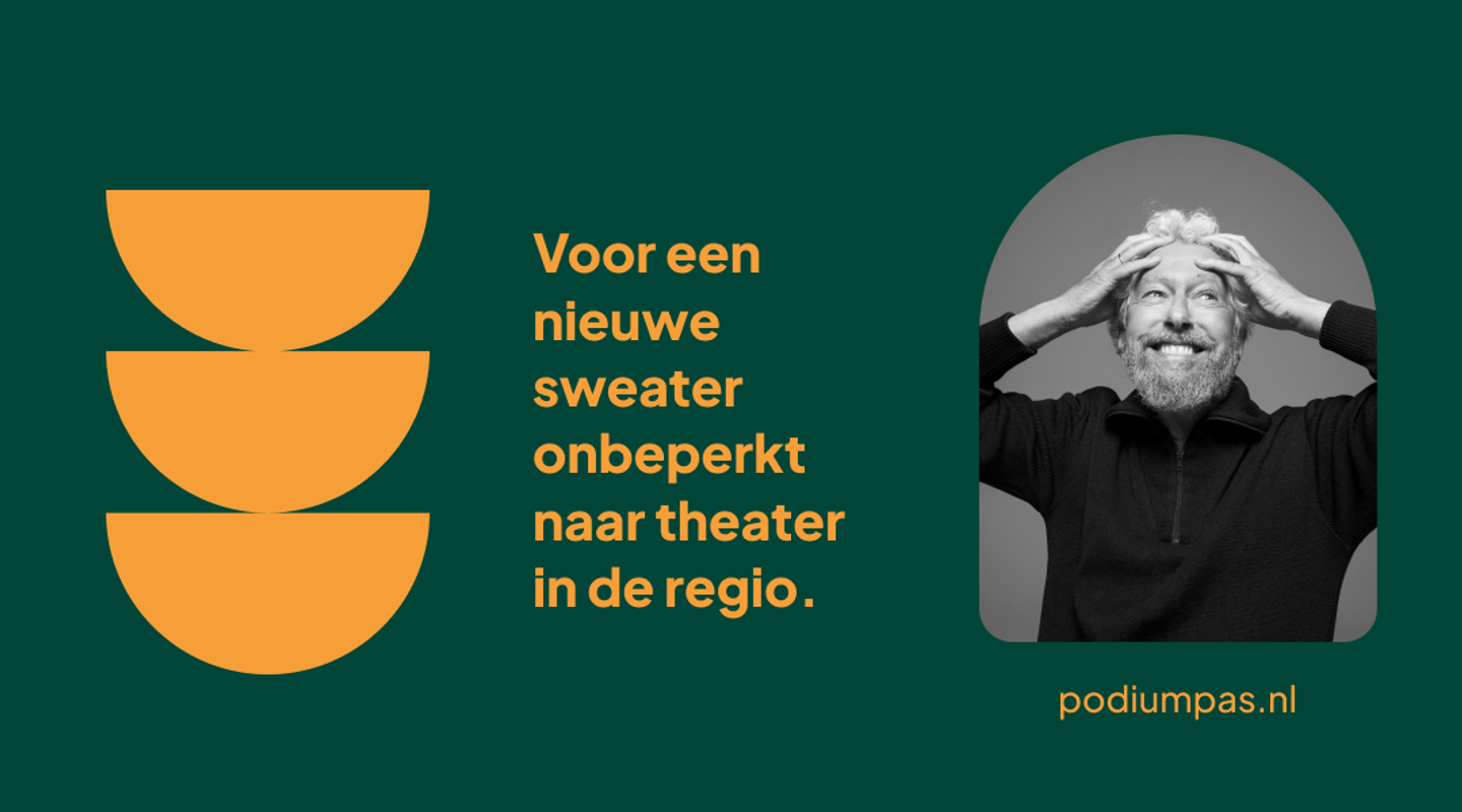 Podiumkunsten maken je leven kleurrijker. Natuurlijk is die plof op de bank snel gedaan, maar hoe zonde is dat? Sta op van de sofa, want er wacht een wereld vol avontuur op je. Nieuwe ervaringen, creatieve vondsten en wereldveranderende inzichten. Voor jou is er daarom Podiumpas. Dat is meer dan een pas. Het is een kans om van iets groters deel uit te maken. Samen met anderen, die zich willen laten inspireren en verwonderen.